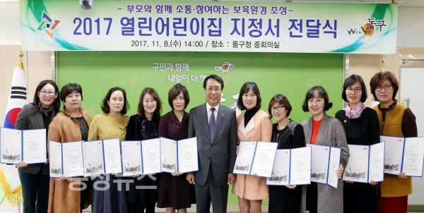 구는 8일 구청 대회의실에서 2017년 열린 어린이집으로 최종 선정된 원장들에게 지정서를 전달했다.