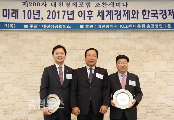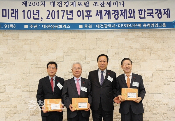 대전상공회의소(회장 박희원)는 9일 오전 유성호텔 3층 킹홀에서 박희원 대전상의 회장과 권선택 대전시장 등 지역 기관·단체장과 기업인, 포럼회원 등 150여명이 참석한 가운데, 대전경제포럼 조찬세미나를 개최하고 200차 기념행사를 가졌다.