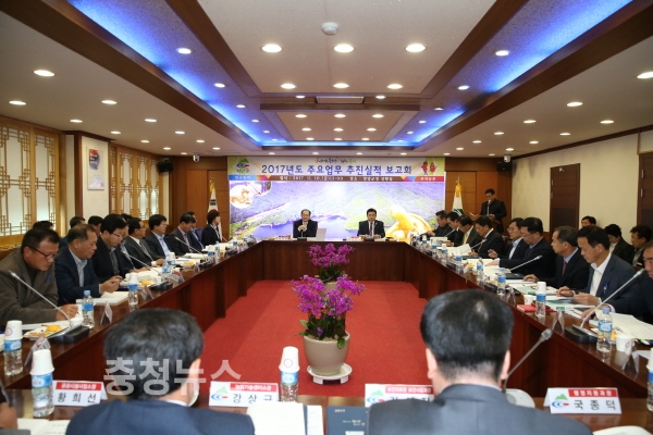 충남 청양군이 2017년 군정 주요업무 추진실적 보고회를 갖고, 연말을 앞둔 시점에서 올해 세운 목표에 대해 차근차근 정리하는 계기를 마련했다.