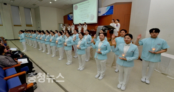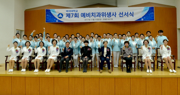 백석대학교(총장 장종현) 보건학부 치위생학과는 10일 교내 조형관 807호에서 ‘제7회 예비치위생사 선서식’을 개최하고 치위생사로서의 인류 봉사의 책임과 의무를 다할 것을 다짐했다.