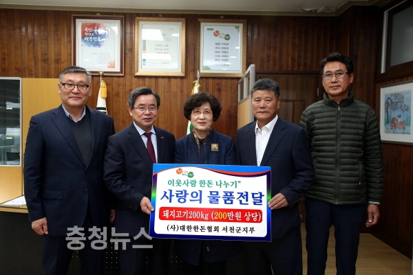 이 날, 또 다른 기탁을 한 (사)대한한돈협회 이청균 서천군지부장은 “우리 한돈이 이웃들에게 사랑과 희망을 함께 나누는 에너지가 되길 바라는 마음”이라며 “앞으로도 꾸준한 나눔활동으로 훈훈한 분위기를 조성하는데 일조하겠다”고 말했다.