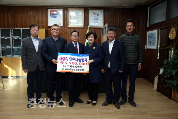 충남 서천군(군수 노박래)은 10일 서천축산업협동조합(조합장 박근춘)과 (사)대한한돈협회 서천군지부(지부장 이청균)가 지역 내 어려운 이웃을 위해 써달라며 연탄 1만장(600만원 상당), 한돈200kg(200만원 상당)을 기탁했다고 밝혔다.