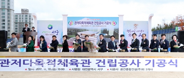 대전 서구(구청장 장종태)는 지난 10일 관저체육공원에서 장종태 서구청장을 비롯해 주민 300여 명이 참석한 가운데, 관저다목적체육관 건립공사 기공식을 열었다.