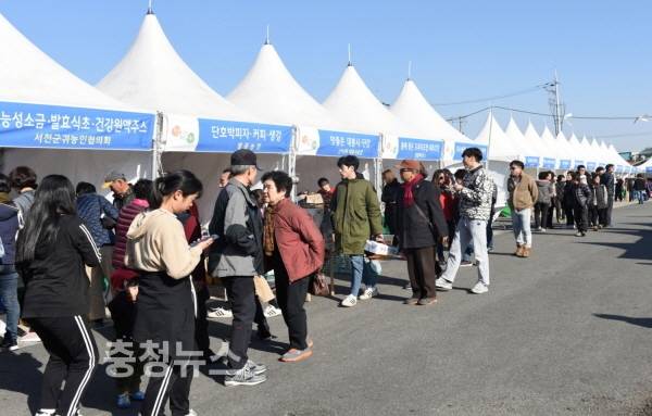 행사장에선 지역을 대표하는 모시송편과 친환경 농축산물, 전통장류, 산야초 발효액, 가공식품까지 다양한 농상품을 시식과 홍보로 알렸으며 판매 부스에서는 저렴하게 판매하여 알뜰하게 구입하려는 소비자의 발길을 사로잡았다.