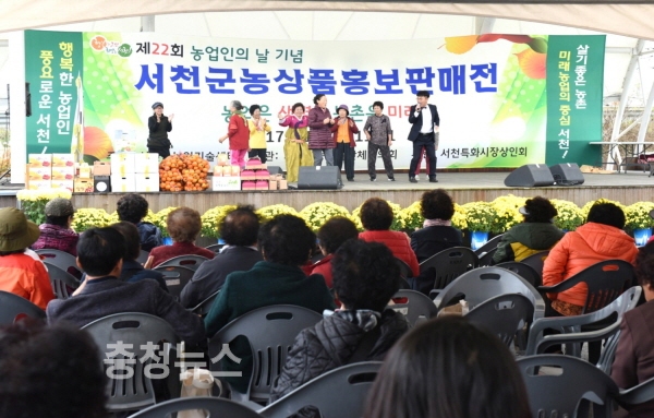 서천군(군수 노박래)은 지난 10일부터 11일까지 2일간 서천특화시장 광장에서 지역을 대표하는 농ㆍ특산물, 가공 식품 등 농업관련 융ㆍ복합 산업 결과물을 한자리에 모은 ‘2017년 서천군 농상품 홍보ㆍ판매전’을 열어 농업인과 소비자가 하나되는 화합의 시간을 가졌다.