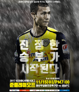 플레이오프를 통한 ‘클래식 승격’을 노리는 아산무궁화프로축구단은 이달 15일 오후 7시 이순신종합운동장에서 4위 성남FC를 상대로 KEB 하나은행 K리그 준플레이오프를 치른다.