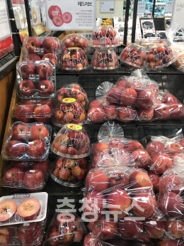 충남 예산군에서 생산된 속 빨간 사과 ‘레드러브’가 이달 6일부터 롯데마트 등 전국 대형 유통매장에 본격적으로 출하됐다.