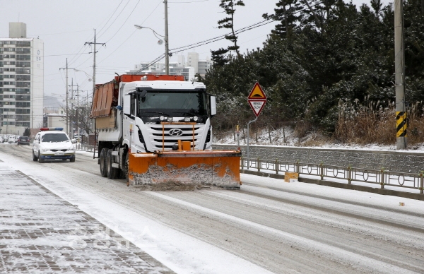 특히, 군은 지난 2015년 12월부터 염화칼슘 사용량을 줄이고 환경파괴 및 도로파손 등의 문제가 없는 친환경 제설제를 사용해 좋은 반응을 얻고 있으며, 올해도 도로에 염화칼슘 잔여물이 남지 않는 습염식 제설방식을 적극 사용하겠다고 밝혔다.