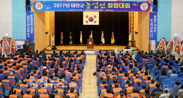 충남 태안군에 따르면, 농촌지도자태안군연합회(회장 이연우)는 14일 군민체육관에서 한상기 군수를 비롯, 지역 농업인 및 가족 등 1200여 명이 참석한 가운데 ‘2017. 태안군 농업인 화합대회’를 개최했다.