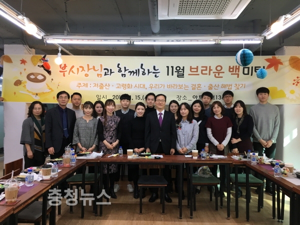 지난 10월에 취임한 이필영 부시장은 15일 아트큐브136에서 ‘저출산·고령화 시대, 직원이 바라보는 결혼·출산 해법’이란 주제로 브라운 백 미팅을 열어 직원들과 격의 없이 의견을 나눴다.