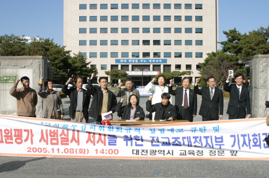 한편 전교조 대전지부는 12일 서울 광화문에서 교원평가 시범운영 철회 요구 ‘연가투쟁’과 15일 교원평가시범실시 규탄 및 교원구조조정 저지를 위한 대전교사 결의대회 등 투쟁할 계획이다.