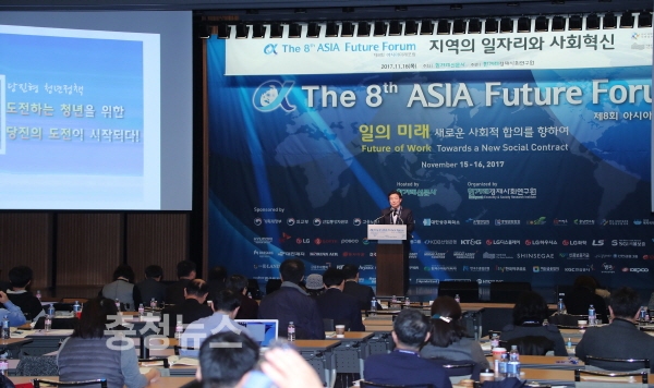 김홍장 당진시장이 16일 대한상공회의소 국제회의장에서 열린 제8회 아시아미래포럼에 참석해 당진형 청년정책을 알렸다.