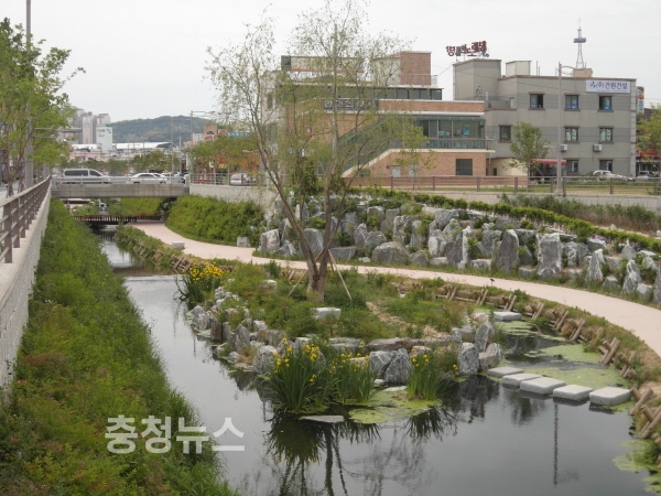 이에, 생활하수로 악취가 심했던 하천에 물고기(피라미, 밀어 등 7종)와 양서류(참개구리 등 17종)가 살아나고 조류(묽은머리오목눈이 등 7종) 등이 돌아오는 것으로 확인되며 하천의 생명력 및 생태계 다양성이 확보됐다.