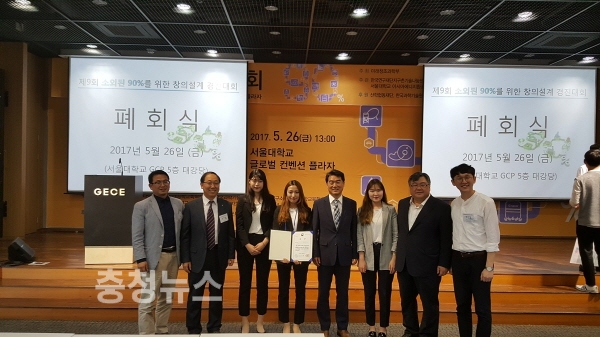 지난 5월 미래창조과학부에서 주최한 ‘소외된 90%를 위한 창의설계 경진대회“에서 적정기술 아이템인 “대안 생리대” 블라섬(Blossom)으로 대상(미래창조과학부장관상)을 수상한 꽃다비팀의 수상 모습