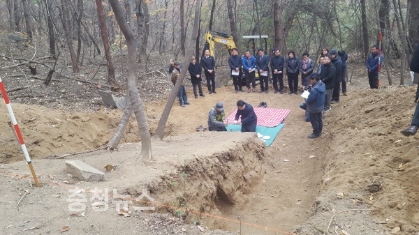 아산시 배방읍 중리 산86-1번지 일대 유해 시굴 발굴 현장