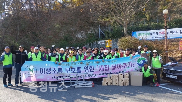대전 서구(구청장 장종태)는 지난 20일 도솔산에서 자원보호협의회 회원 등 50여 명이 참여한 가운데 ‘새집 달아주기’ 행사를 개최했다고 밝혔다.