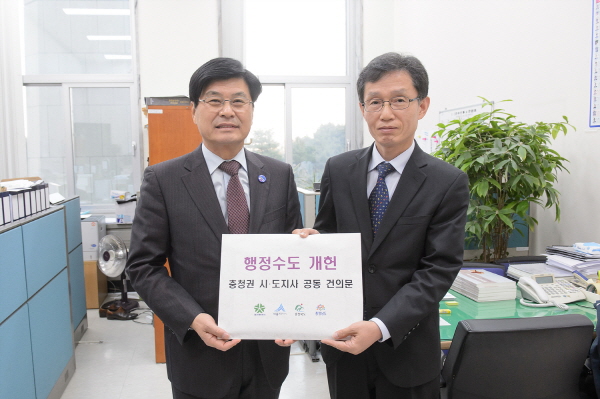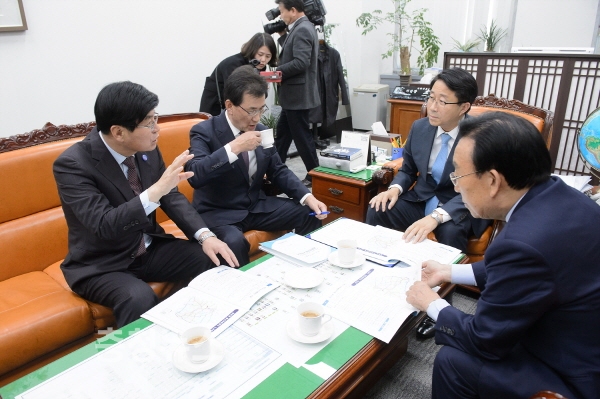 이 시장은 이날 김관용 경북도지사 및 이시종 충북도지사와 함께 2018년 광역 SOC와 예산편성과 관련, 중부권정책협의회에서 마련한 공동건의문을 조정식 국토위원장과 백재현 예결위원장에게 전달하고 예산 반영을 건의했다.