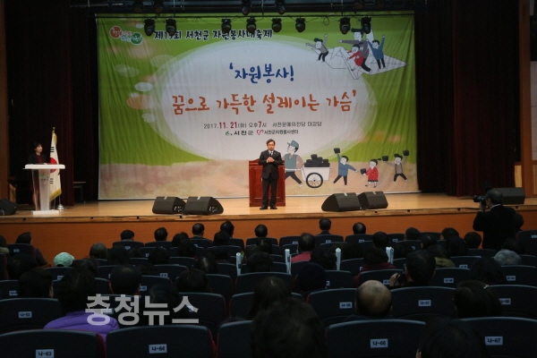 충남 서천군(군수 노박래)은 21일 서천문예의 전당 대강당에서 자원봉사자 및 단체, 주민 등 약 600여 명이 참석한 가운데 ‘제15회 서천군 자원봉사 대축제’를 개최했다.