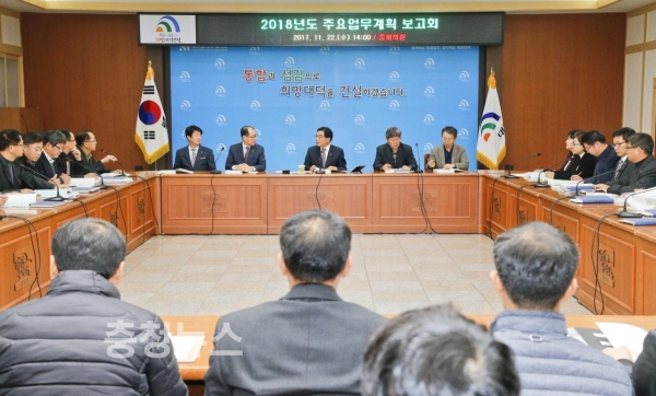 대전 대덕구(구청장 박수범)는 22일 구청 중회의실에서 간부공무원을 비롯한 직원 100명이 참석한 가운데 ‘2018년도 주요업무계획 보고회’를 가졌다.