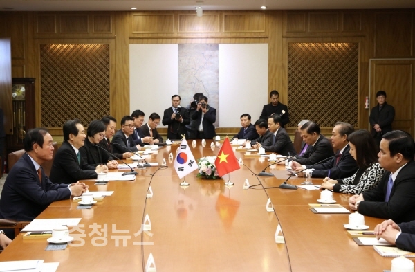 이에 쯔엉 화 빙(Truong Hoa Binh) 수석부총리는 공동이익과 평화발전을 위한 양국의 지난 25년간 성과를 강조한 뒤, 올해 4월 정 의장의 베트남 방문을 계기로 양국 의회간 상호협력 및 교류가 보다 강화되었다면서 "향후 베트남의 스마트도시 건설 및 인프라사업 등 경제, 교역, 투자 분야에서 한국 기업의 투자와 기술협력 확대를 희망한다”고 말했다.