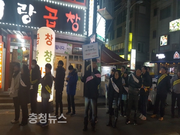 도교육청은 지난 23일 오후 7시부터 14개 시군별로 학생들이 많이 몰리는 중심가에서 교육지원청 주관으로 경찰서, 인근학교 교사 및 학생생활 지도상임위원, 유관기관이 합동 캠페인을 실시했다.