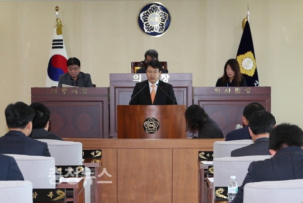 시정연설 중인 복기왕 아산시장