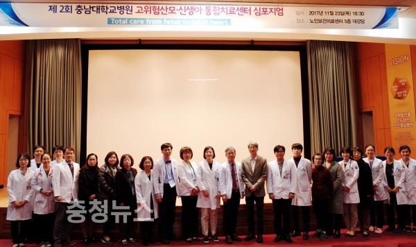 충남대학교병원(원장 송민호)은 23일 노인보건의료센터 5층 대강당에서“Total care from fetus to adult heart (태아부터 성인 심장질환 까지 전체적 관리)”를 주제로 제2회 고위험 산모·신생아 통합치료센터 심포지엄을 개최했다.