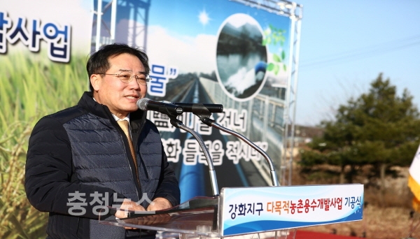 이번 강화지구 다목적농촌용수개발사업은 2020년까지 강화군 4개면과 김포시 포내리 일원에 저류지 1개소, 양수장 3개소, 송수관리 24.2km를 연견하게 된다. 이 사업을 통해 총 62.5만㎥의 수자원 확보로 인근 농경지 680ha에 공급하게 된다.