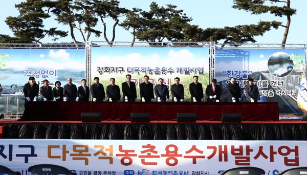 한국농어촌공사(사장 정승)는 24일 인천 강화군 하점면에서 안상수 국회의원, 농림축산식품부 김종훈 차관보, 조동암 인천광역시 부시장, 이상복 강화군수 등 관계자와 지역주민 500여명이 참석한 가운데 강화지구 다목적농촌용수개발사업 기공식을 개최했다고 밝혔다.