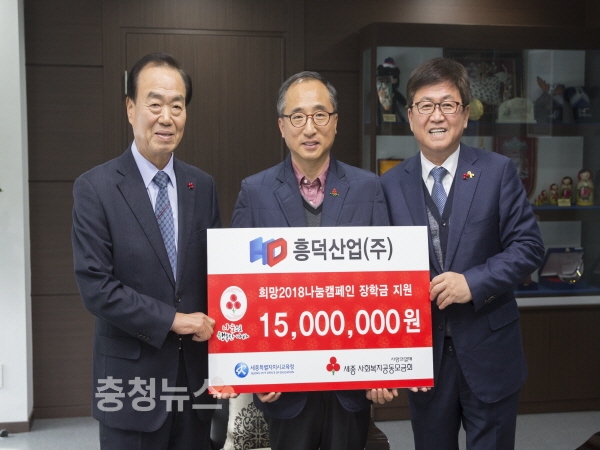 세종시 연동면에 위치한 ㈜흥덕산업은 보도 블록 전문 생산업체로, 세종시교육청에 매년 1천 5백만원을 기탁하고 있으며 평소에도 주변 마을에 다양한 지원을 통해 나눔을 실천하고 있다.