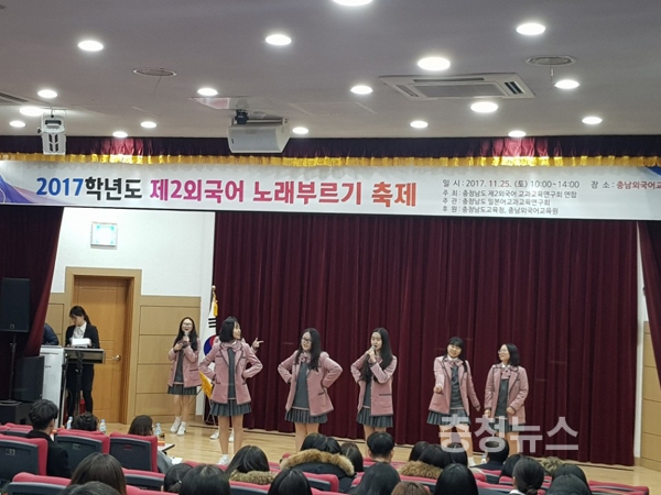충남도교육청(교육감 김지철) 소속 제2외국어교과교육연구회연합회는 제2외국어 노래부르기를 통해 다름과 다양성을 존중하며, 자연스럽게 제2외국어 학습을 활성화하기 위해 25일 충남외국어교육원에서 도내 중·고등학생들을 대상으로 ‘제2외국어 노래부르기 축제’를 개최했다.