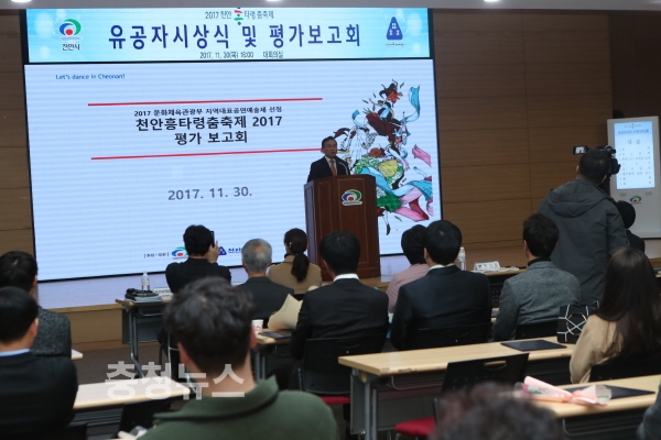 이 같은 내용은 30일 오후 4시 시청 대회의실에서 개최된 ‘천안흥타령춤축제2017’ 유공자 표창 및 평가보고회에서 충남대학교 산학협력단(책임연구원 김춘식)이 9월 13일부터 17일까지 5일간의 축제기간을 기준으로 분석한 평가보고서를 통해 밝혀졌다.
