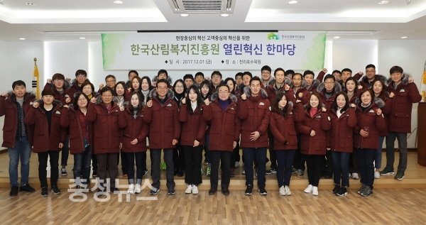 산림청 한국산림복지진흥원(원장 윤영균)은 1일 충남 태안군 소원면 천리포수목원에서 전 직원이 참여한 가운데 정부의 국정철학을 공유․확산하고, 혁신 정책 기조에 부응하기 위해 열린 혁신 한마당을 개최했다고 밝혔다.