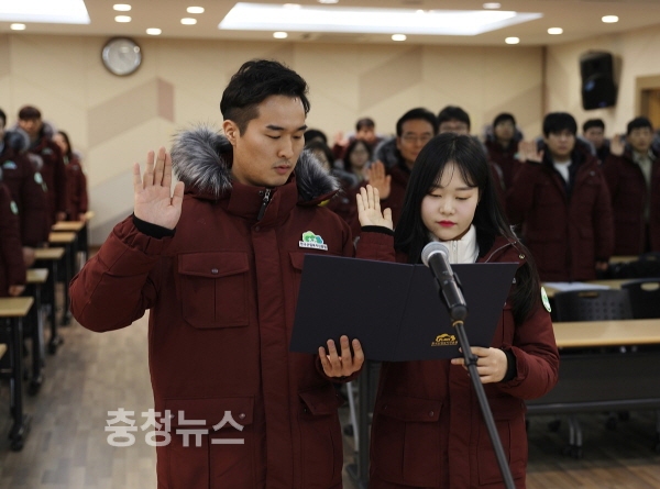 한국산림복지진흥원 직원들이 1일 충남 태안군 소원면 천리포수목원에서 개최된 '2017 열린혁신 한마당' 행사에서 열린혁신 선도기관으로 나아가기위한 임직원 선서식을 하고 있다