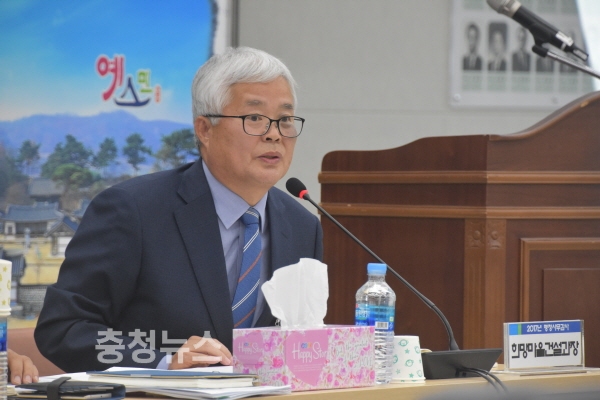 1일 오전 시청 회의실에서 열린 희망마을건설과 행정사무감사에서 박승용 의원(자유한국당, 나 선거구)은 조삼구 과장을 향해 2017년 지방하천유지관리 평가에서 논산시가 최우수를 받은 것에 대해 과장 이하 직원들을 칭찬했다.