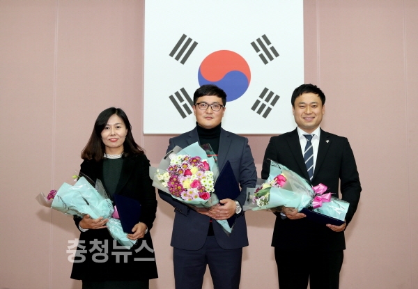 왼쪽부터 엄기숙 수석부위원장, 장문준 위원장, 김재홍 사무총장 / 충청뉴스 최형순 기자