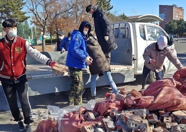 한동대학교 찾아 지진 피해 건물 잔해와 쓰레기 등 수거