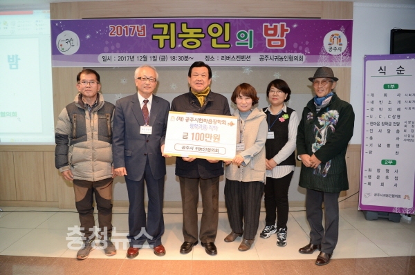 또한, 이 자리에서 공주시귀농인협의회는 지난 1년 동안 농산물 판매, 직거래 장터 운영 수입금 중 일부인 100만원을 (재)공주시한마음장학회에 기탁하기도 했다.