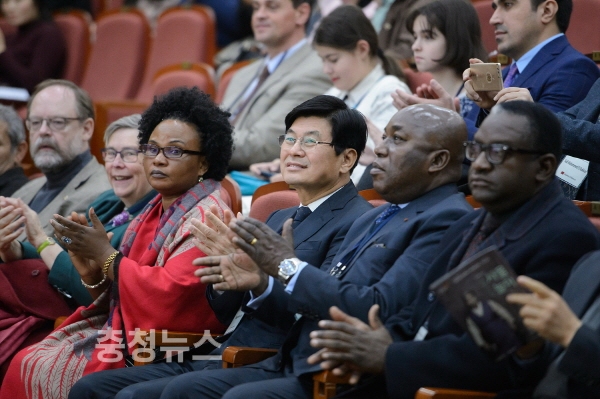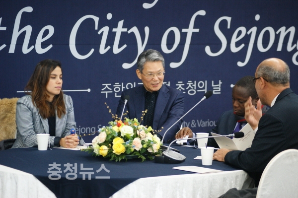 이날 외교사절단은 ‘이춘희 세종시장과의 대화’를 시작으로, 청사 내 여민실에서 세종시민들과 함께 김덕수 사물놀이패의 축하공연을 관람한 뒤 행정도시홍보관, 세종정부청사 옥상정원, 대통령기록관(호수공원) 등 세종시를 상징할만한 주요 시설들을 탐방했다.