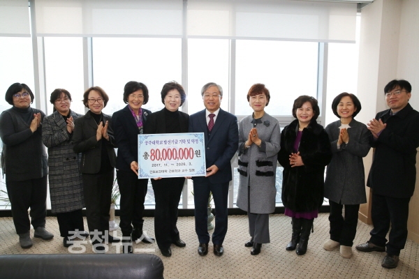 공주대 간호보건대학 간호학과 8명의 교수가 각각 1000만원씩 총 8000만원의 대학발전기금을 기탁 및 약정했다.