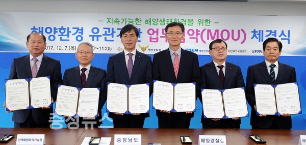 서해안 유류유출사고 발생 10년째를 맞은 7일 충남도가 국내 해양 환경 관련 5개 기관과 충남 해양 생태 환경 발전을 위해 손을 맞잡았다.