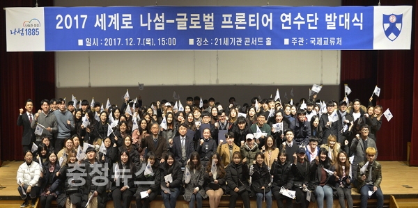 배재대는 7일 21세기관 콘서트홀에서 ‘2017 세계로 나섬-글로벌 프론티어 연수단’ 발대식을 가졌다. 이들은 연수일정에 따라 19개국에서 겨울방학 내 또는 내년 1학기까지 현지 연수를 진행한다.