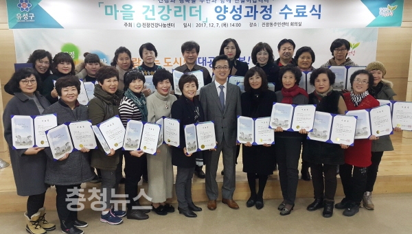 대전 유성구(구청장 허태정)는 7일 진잠동주민센터에서 주민참여형 마을만들기 사업의 일환으로 ‘마을 건강리더’ 수료식을 개최했다고 밝혔다.