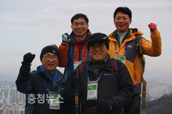 대덕사랑산악회(회장 공두식)초급반과 중급반 회원 40여명은 9일 대덕이노폴리스벤처협회(회장 이종포/앤스코 대표)사무국 직원들과 함께 대전 구봉산에서 ‘제85차 정기산행‘을 진행했다.