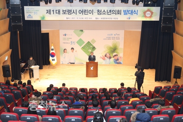 충남 보령시는 지난 9일 보령문화의전당 대강당에서 김동일 시장과 어린이・청소년 의원, 아동친화도시 추진 위원 등 70여 명이 참석한 가운데 제1대 보령시 어린이청소년 의회 발대식을 가졌다.