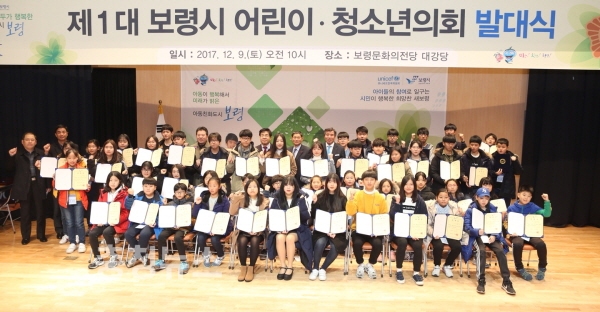 한편, 제1대 어린이청소년의회 의장단으로 의장은 대천여중 3학년 신다은, 부의장은 대천여상 1학년 차슬기와 청라중 3학년 차재준, 교육문화위원장으로 대천여중 2학년 서성은, 복지안전위원장으로 청라중학교 2학년 권미리, 아동권리위원장으로 대천서중 3학년 홍소이 학생이 활동하게 된다.