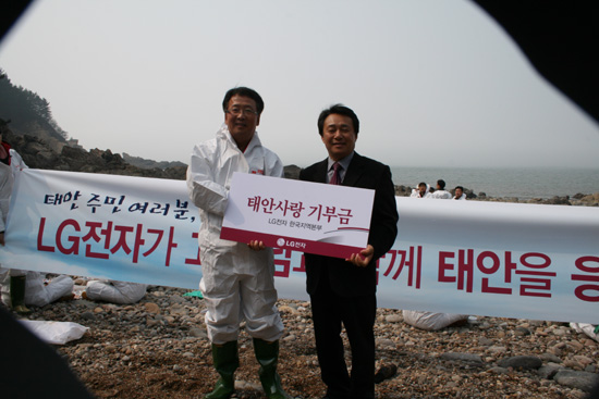LG전자(대표 남용)가 11일 기름유출로 피해를 입은 태안 주민들을 위해 사용해 달라며 4억원의 성금을 충청남도에 전달했다.