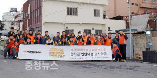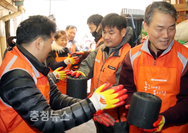 한국타이어(대표이사 서승화) 동그라미봉사단 40여명은 지난 11일 대전시 대덕구 신탄진동 등 소외계층 저소득 가구를 대상으로 연탄 나눔 봉사활동을 펼쳤다.