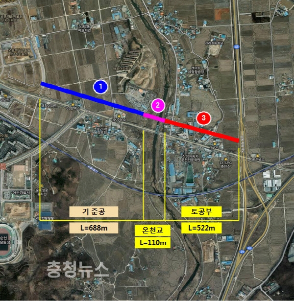 이에, 아산시에서는 대규모 재정이 투자되는 사업임을 감안해 우선 2016년 전국체전․장애인체전에 대비해 60억원을 투자하여 온천대로 중 이마트 교차로에서 온천교까지(연장 688m) 6차로 확장을 완료했고, 잔여구간인 온천교에서 남동 지하차도까지(연장 632m)는 이번에 착수하게 됐다.