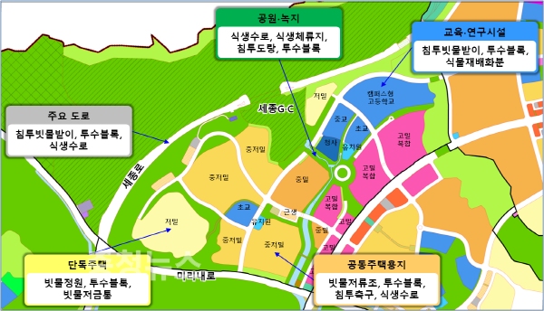 특히, 행복도시 산울리(6-3생활권)에는 적극적인 빗물관리 목표량의 적용을 통해 물 순환 친환경 생태 모범도시로 만들 계획이며,